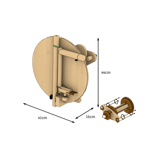 Meet the Travel Buddy, your perfect companion for spinning on the go. Compact, foldable, and easy to carry in its custom backpack made from recycled PET bottles, this spinning wheel combines portability with precision.
